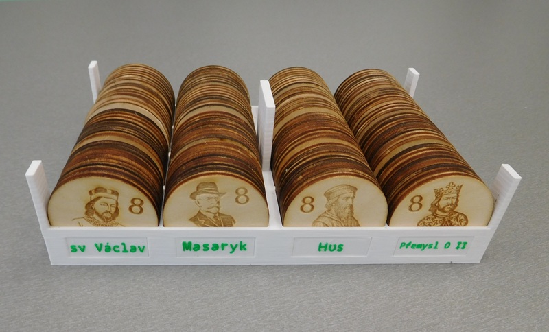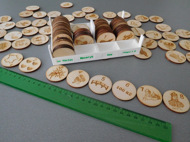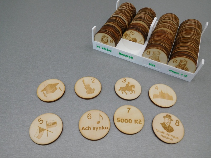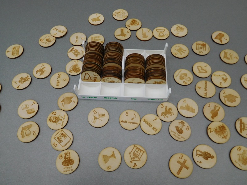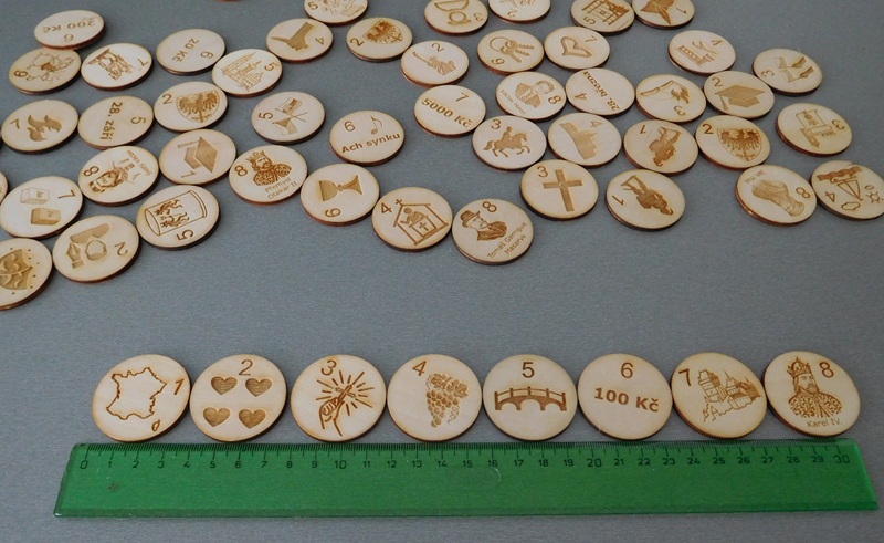 Charakteristika modelů: Indicie jsou gravírované do dřevěného kolečka o průměru 4 cm a síle 3 mm. Krabička je upravena dle počtu objednaných sad.