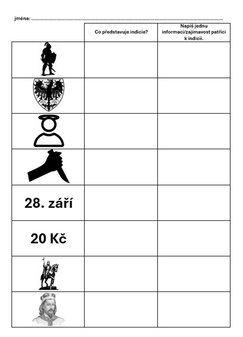 Navázat se dá pracovním listem, kde jsou uvedené jednotlivé indicie. Žáci vysvětlí, co je na obrázku zobrazeno a jak se to týká hádané postavy. Následně mohou žáci pomocí informačních zdrojů vyhledat doplňující informace či zajímavosti.